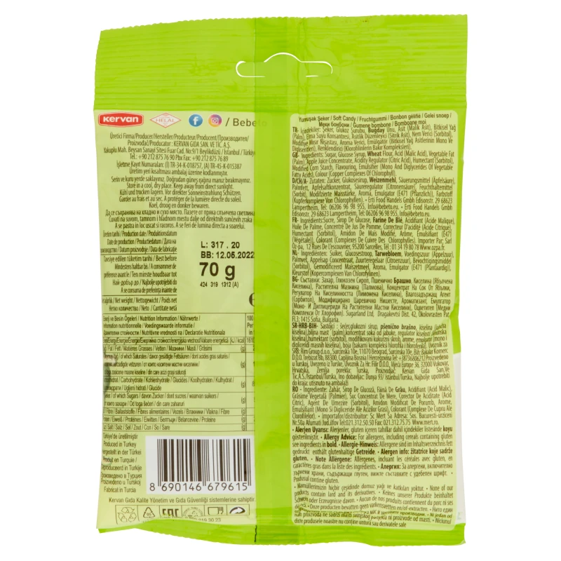 Bebeto Sour Apple Spaghetti 70g – Case Of 20