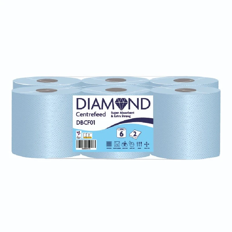 Diamond Blue Value Centrefeed Paper Tissue 6 Roll Pack.